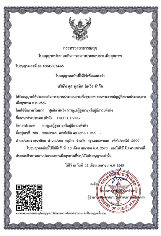 ฟูลฟิล ลิฟวิ่ง (Fulfill Living) ก่อตั้งขึ้นจากความตั้งใจที่จะมอบการดูแลผู้สูงอายุด้วยหัวใจและความอบอุ่นเหมือนอยู่บ้าน เพื่อให้ผู้สูงอายุมีคุณภาพชีวิตที่ดีและมีความสุขในทุกวัน